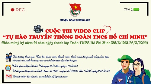 Theo đó, các cấp bộ đoàn, hội, đội đã tổ chức tuyên truyền giáo dục về truyền thống vẻ vang của Đoàn và tuổi trẻ bằng nhiều hình thức phong phú, đa dạng. Trước đó, Ban Thường vụ Huyện đoàn xây dựng kế hoạch tổ chức Cuộc thi video clip “Tự hào truyền thống Đoàn TNCS Hồ Chí Minh” chào mừng kỷ niệm 91 năm ngày thành lập Đoàn TNCS Hồ Chí Minh (26/3/1931-26/3/2022).