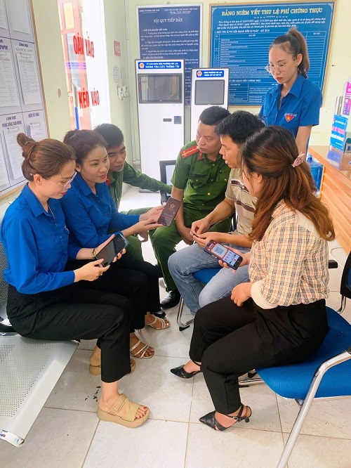 Đội hình thanh niên tình nguyện hỗ trợ người dân giải quyết thủ tục hành chính