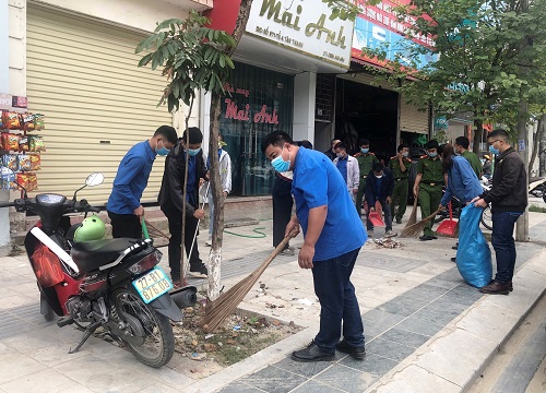 ĐVTN TP.Điện Biên Phủ dọn dẹp vệ sinh, cảnh quan môi trường tại trục đường Võ Nguyên Giáp.