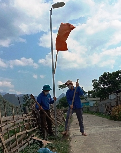 ĐVTN dựng cột và treo cờ Tổ quốc tại các cột đèn.