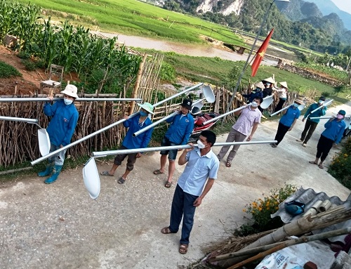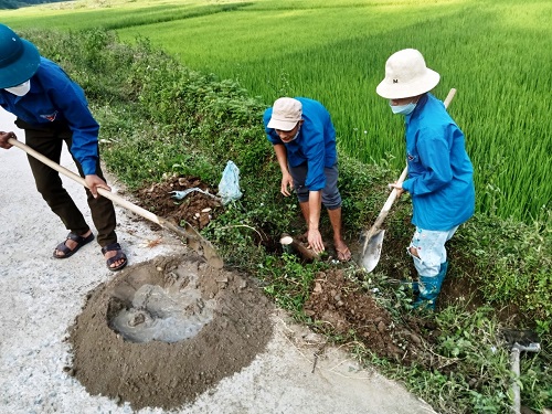 Đối với những đoàn đường sát bờ ruộng, ĐVTN kè nền để cột đèn kiên cố hơn.