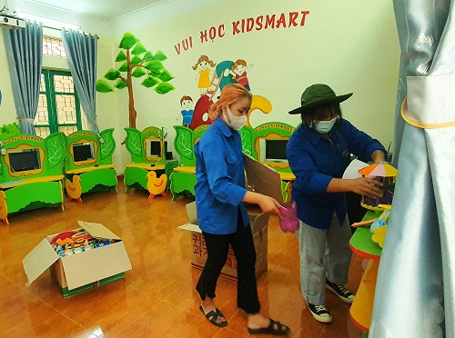 và buổi tổng kết lớp học. Đặc biệt trong Hè năm 2021, Đoàn Trường đã khánh thành Công trình Thanh niên “Không gian đẹp cho em”. Trong năm học, các Liên Chi đoàn, Chi đoàn trực thuộc đã tuyên truyền, hướng dẫn và yêu cầu ĐVSV ngành Mầm non thu gom chai nhựa, túi linon và các rác thải thải khác. Từ những rác thải đã thu thập và những kiến thức chuyên ngành được học ở các môn như thủ công mỹ thuật, phương pháp dạy học mỹ thuật, hoạt động tạo hình… tạo ra đồ dùng học tập cho trẻ mầm non, đồ trang trí không gian lớp học của trường mầm non.Kết quả sau 7 tháng triển khai Đoàn trường đã thu được 375 sản phẩm học tập và đồ trang trí làm từ rác thải nhựa. Ngày 11/7/2021, Đoàn trường đã cử 15 tình nguyện viên dùng các sản phẩm đã làm trang trí không gian lớp học cho trường Mầm non Thanh Chăn, huyện Điện Biên. Ngoài ra, ĐVSV còn tham gia vẽ 03 bức tranh tường khổ lớn với tổng diện tích trên 30m2 với các chủ đề tuyên truyền an toàn giao thông, những câu chuyện cổ tích gắn với trẻ thơ.