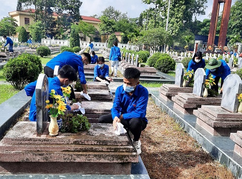 ĐVTN lau bia liệt sỹ tại nghĩa trang Him Lam và hành lễ trước khi thắp nến tri ân