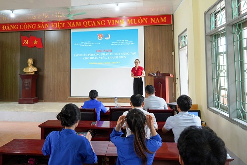 Cô Trần Thị Thu trao đổi về phương pháp tư duy sáng tạo cho đoàn viên, thanh niên, học sinh.