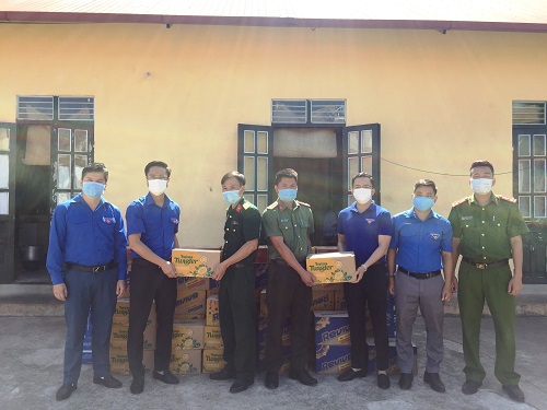Tại đây, đồng chí Đặng Thành Huy - Tỉnh ủy viên, Bí thư Tỉnh đoàn đã biểu dương tinh thần trách nhiệm, thăm hỏi, tặng quà động viên lực lượng thực hiện nhiệm vụ tại khu cách ly gồm các nhu yếu phẩm như nước lọc, nước ngọt, mì tôm... trị giá hơn 10.000.000 đồng.