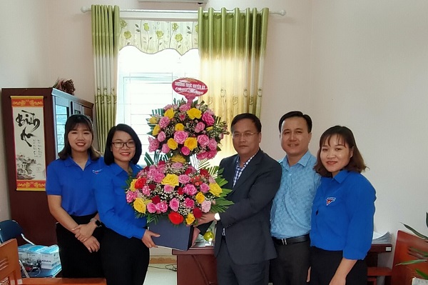 Thường trực Huyện ủy Mường Ảng tặng hoa, chúc mừng Đoàn Thanh niên huyện nhân dịp kỷ niệm 90 năm Ngày thành lập Đoàn TNCS Hồ Chí Minh.