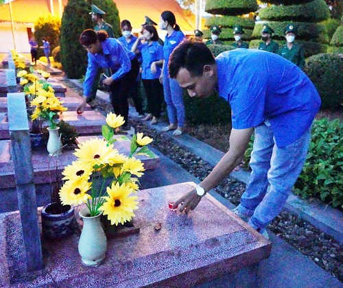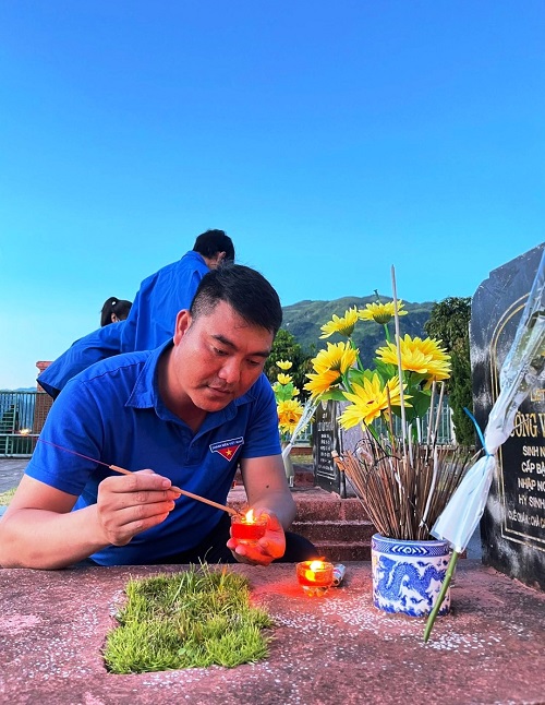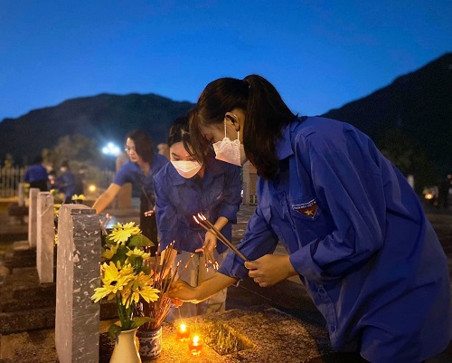 Đoàn viên, thanh niên thắp nến tri ân trên các phần mộ nghĩa trang liệt sỹ.