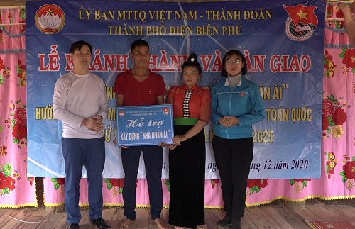 Chiều ngày 25/12/2020, Thành đoàn Điện Biên Phủ phối hợp với Ủy ban Mặt trận Tổ quốc thành phố tổ chức khánh thành và bàn giao “Nhà nhân ái” cho gia đình đoàn viên có hoàn cảnh khó khăn Lò Văn Quốc, bản Bua, xã Mường Phăng, thành phố Điện Biên Phủ.