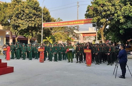 chuẩn bị lên đường nhập ngũ tại xã Mường Phăng, thành phố Điện Biên Phủ.