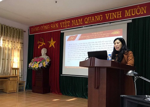 truyền đạt nội dung đến các đại biểu. Hội nghị đã được nghe báo cáo viên Trung tâm Bồi dưỡng Chính trị thành phố triển khai các nội dung cụ thể của Nghị quyết Đại hội Đảng bộ Thành phố Điện Biên Phủ lần thứ VII, Nghị quyết Đại hội Đảng bộ tỉnh Điện Biên lần thứ XIV, nhiệm kỳ 2020-2025, các chỉ tiêu cần thực hiện trong giai đoạn 2020-2025, vai trò, tầm quan trọng việc thực hiện các chỉ tiêu Nghị quyết nhiệm kỳ mới, vai trò của các cấp, các ngành trong thực hiện thành công nhiệm vụ chính trị - kinh tế - xã hội của địa phương.