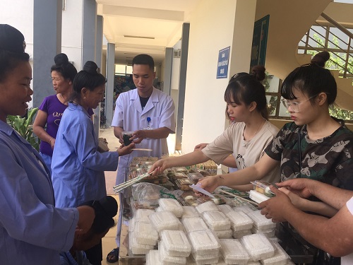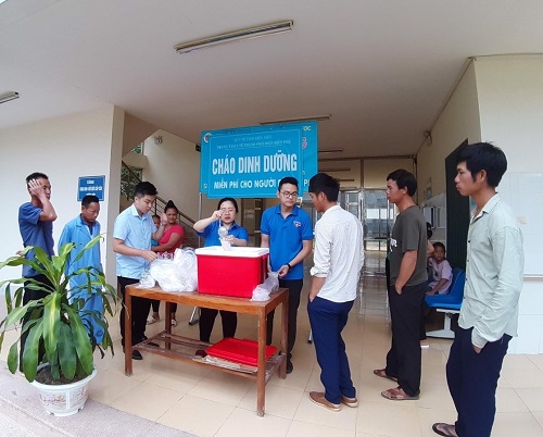 ĐVTN phát cháo miễn phí cho bệnh nhân.