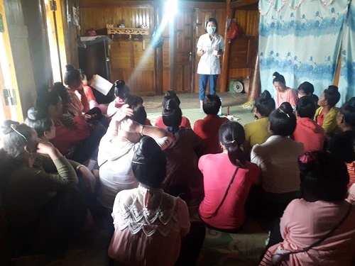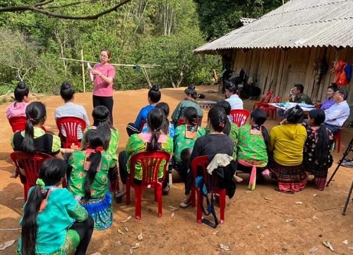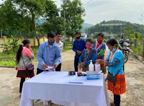 Tuyên truyền cách phòng chống dịch bệnh cho người dân tại điểm bản.