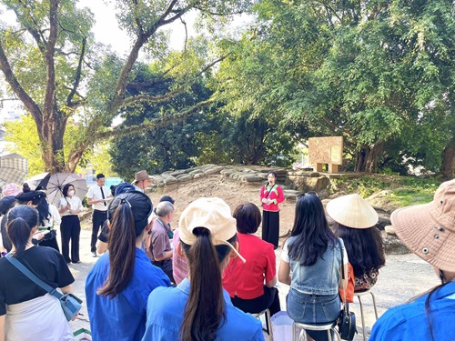 Đội hình tình nguyện viên tham gia hỗ trợ cho khách nước ngoài tại các điểm di tích.