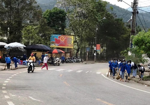 Đoàn viên, thanh niên ra quân vệ sinh môi trường.