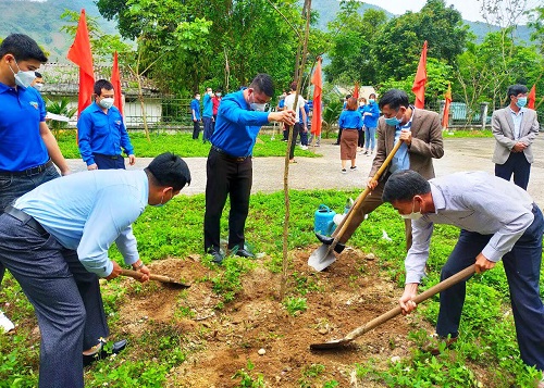 Các đại biểu, ĐVTN tham gia trồng cây xanh hưởng ứng Tết trồng cây
