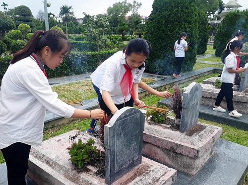 Các em thiếu nhi dâng hương tại các phần mộ liệt sỹ tại Nghĩa trang A1.