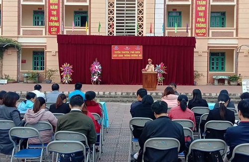 Toàn cảnh tuyên truyền Luật ATGT đường bộ tại trường THPT thị xã Mường Lay.