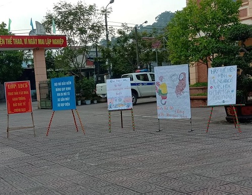 Pano, áp phích tuyên truyền Luật ATGT đường bộ được các em thể hiện sinh động. Hoạt động tuyên truyền pháp luật về an toàn giao thông đường bộ nhằm nâng cao nhận thức của học sinh về các quy định của Luật giao thông đường bộ cho mọi người khi tham gia giao thông, hình thành ý thức tự giác tuân thủ chấp hành pháp luật cho học sinh khi tham gia giao thông, góp phần hạn chế tai nạn giao thông và vi phạm trật tự ATGT trong học sinh.
