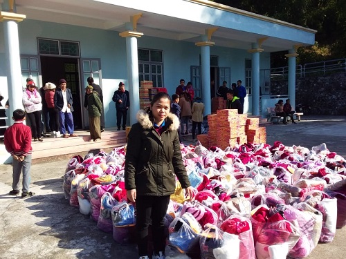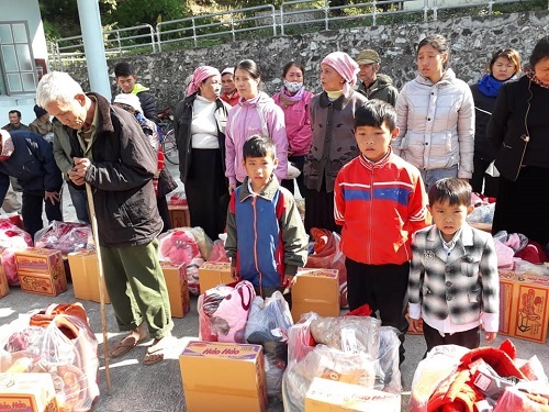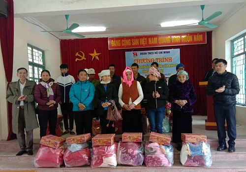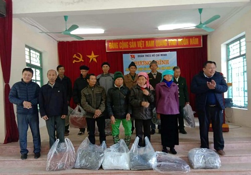 trao tặng những suất quà cho các hộ gia đình có hoàn cảnh khó khăn. Tại đây, đoàn đã trực tiếp trao tặng 100 suất quà cho các hộ nghèo, đối tượng có hoàn cảnh đặc biệt khó khăn, mỗi suất quà trị giá 1.500.000 đồng bao gồm tiền mặt và một số nhu yếu phẩm; đồng thời trao 50 chiếc áo ấm cho các cụ già neo đơn, đơn thân, trao 5000 quyển vở viết, 2500 cây bút và các suất học bổng cho các em học sinh nghèo, học sinh vượt khó học giỏi. Số quà được trao lần này có tổng trị giá trên 200 triệu đồng.