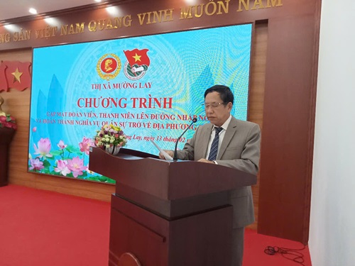 Thay mặt cho các đồng chí Lãnh đạo thị xã, đồng chí Vũ Duy Luân - Phó Bí thư thường trực Thị ủy, Chủ tịch HĐND thị xã phát biểu động viên, giao nhiệm vụ cho các đồng chí đoàn viên, thanh niên lên đường nhập ngũ và mong muốn đoàn viên, thanh niên tiếp tục phát huy truyền thống quê hương Mường Lay anh hùng, không ngừng tu dưỡng, rèn luyện, khắc phục mọi khó khăn, thử thách, phấn đấu xứng danh với truyền thống “Bộ đội Cụ Hồ”, hoàn thành xuất sắc nhiệm vụ trong thời gian tham gia quân ngũ, đồng thời đồng chí cũng nhắc nhở, luôn tin tưởng các đồng chí đoàn viên,thanh niên hoàn thành nghĩa vụ trở về địa phương sẽ tích cực đóng góp công sức, phat huy tinh thần Bộ đội Cụ Hồ để