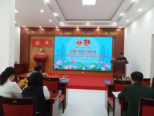 Quang cảnh buổi Gặp mặt. Buổi gặp mặt diễn ra trong khí thế đầu xuân năm mới, với sự quan tâm của các đồng chí lãnh đạo thị xã và các ban ngành, đoàn thể. Tại buổi gặp mặt các đồng chí ĐVTN được nghe đồng chí Chủ tịch Hội Cựu chiến binh thị xã nói chuyện về truyền thống, lịch sử vẻ vang của Quân đội nhân dân Việt Nam; đồng Bí thư Thị Đoàn cũng đã có ý kiến phát biểu, nhắn nhủ các chiến sỹ trẻ trước khi họ bước vào cuộc sống mới và giao nhiệm vụ cho các đồng chí ĐVTN hoàn thành nghĩa vụ quân sự. Tại buổi gặp mặt, đại diện đoàn viên, thanh niên lên đường nhập ngũ phát biểu cảm tưởng, niềm vinh dự, tự hào của thế hệ trẻ, sự quyết tâm thực hiện tốt nhiệm vụ được giao; đại diện đoàn viên, thanh niên hoàn thành nghĩa vụ trở về địa phương cũng đã động viên, chia sẽ những kinh nghiệm trong quân ngũ với các đồng chí tân binh.