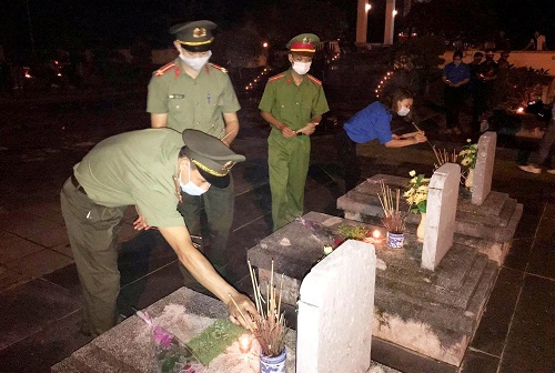Dâng hương, hoa, nến tri ân lên các phần mộ liệt sỹ.