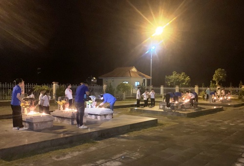 ĐVTTN dâng hương, hoa, nến tri ân lên các phần mộ liệt sỹ.