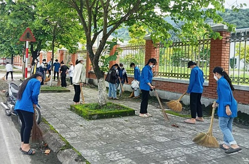 ĐVTN tham gia vệ sinh môi trường.