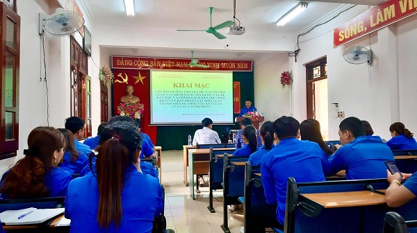 Lớp bồi dưỡng được tổ chức trong 02 ngày (ngày 14,15/4/2021), tham gia lớp bồi dưỡng các học viên sẽ được tiếp thu 05 chuyên đề: Chuyên đề 1: Tôn giáo trong đời sống xã hội; Chuyên đề 2: Chính sách tôn giáo của Đảng và Nhà nước ta; Chuyên đề 3: Đặc điểm cơ bản của cộng đồng dân tộc Việt Nam; Chuyên đề 4: Công tác dân tộc và chính sách dân tộc của Đảng và Nhà nước ta; Chuyên đề 5: Phổ biến, triển khai các chính sách, văn bản pháp luật mới, Luật thanh niên sửa đổi, các kết luận của các cấp bộ Đoàn, do giảng viên Trung tâm chính trị thị xã, Ban Dân vận Thị ủy và lãnh đạo Thị đoàn thị xã truyền đạt.