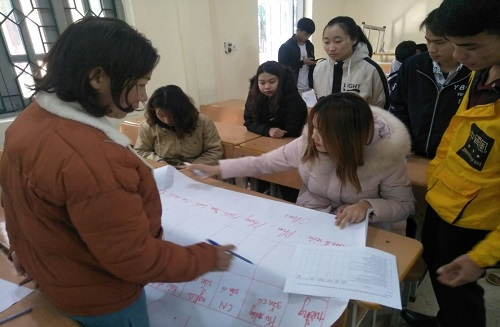 Học sinh, sinh viên thảo luận lựa chọn, định hướng và phát triển ý tưởng khởi nghiệp. Đặc biệt, trong nội dung định hướng và xây dựng ý tưởng khởi nghiệp, qua thảo luận, nhóm học sinh, sinh viên đã lựa chọn các ý tưởng phù hợp với ngành, nghề đào tạo các em đang theo học tại trường, đồng thời các em có thể khởi nghiệp sau khi ra trường như: “Dịch vụ hướng dẫn viên du lịch biên giới Điện Biên”, “Dịch vụ lưu trú, hướng dẫn viên du lịch sinh thái, cộng đồng Điện Biên”, “Dịch vụ ăn, uống, giải khát”, “Trồng rau sạch, an toàn”, “Rèn dao dân tộc Mông”… Đồng thời, các em đã bước đầu thành lập các nhóm khởi nghiệp để dần phát triển các ý tưởng khởi nghiệp ngay từ thời gian đang học tập tại trường.