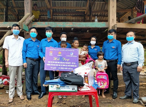 Trong chuỗi các hoạt động Ngày cao điểm Hoa phượng đỏ năm 2021, Ban Thường vụ Tỉnh đoàn đã trao kinh phí hỗ trợ sửa nhà cho em Lò Thị Nguyệt - Học sinh lớp 5A1, Trường tiểu học Xuân Lao, huyện Mường Ảng và trao nước uống các loại cho các chốt kiểm dịch Covid-19 trên địa bàn huyện.