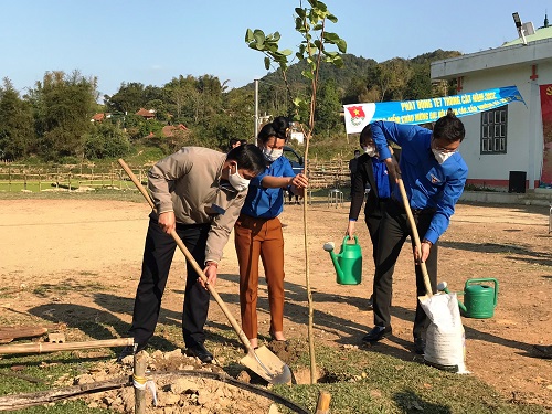 cùng đoàn viên, thanh niên tham gia trồng cây hoa ban tại khuôn viên Nhà văn hóa