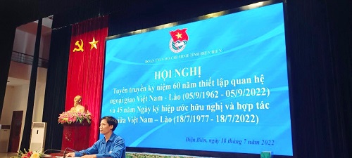 Ngày 18/7/2022, Tỉnh đoàn Điện Biên đã tổ chức Hội nghị tuyên truyền kỷ niệm 60 năm thiết lập quan hệ ngoại giao Việt Nam-Lào (05/9/1962-05/9/2022) và 45 năm ngày ký hiệp ước hữu nghị và hợp tác giữa Việt Nam - Lào (18/7/1977-18/7/2022).