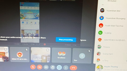 Các đơn vị huyện, thị, thành đoàn tham dự cuộc họp trực tuyến.