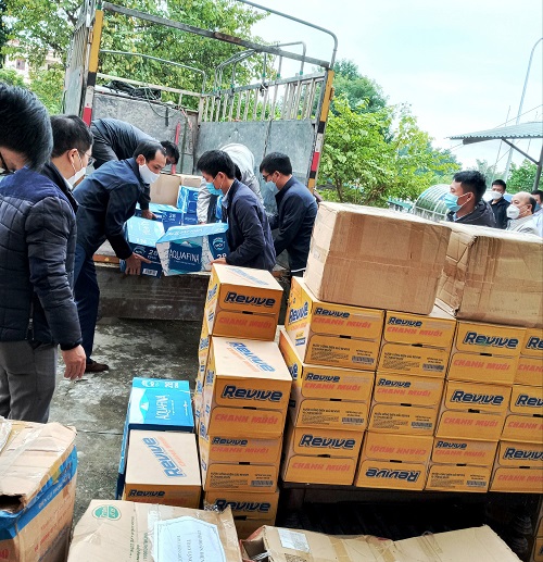 Các lực lượng tham gia vận chuyển quà ủng hộ công tác phòng, chống dịch Covid-19.