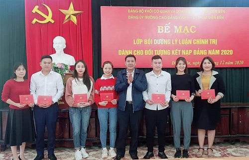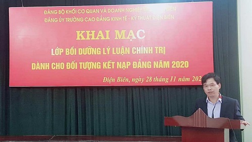 Thực hiện Chỉ thị số 34 CT/TW của Bộ Chính trị về phát triển Đảng viên trong trường học và thực hiện Nghị quyết Đại hội lần thứ IX của Đảng bộ Khối Cơ quan và Doanh nghiệp tỉnh Điện Biên, Nghị quyết Đại hội Đảng bộ Trường Cao đẳng Kinh tế - Kỹ thuật Điện Biên lần thứ XVI, được sự nhất trí của Đảng bộ Khối Cơ quan và Doanh nghiệp tỉnh. Sáng ngày 28/11/2020, Đảng ủy Trường Cao đẳng Kinh tế - Kỹ thuật Điện Biên phối hợp với Ban tuyên giáo Đảng ủy Khối Cơ quan và Doanh nghiệp tỉnh tổ chức “Khai mạc lớp bồi dưỡng lý luận chính trị dành cho đối tượng kết nạp Đảng năm 2020” cho 34 học viên tại Trường Cao đẳng Kinh tế - Kỹ thuật Điện Biên.