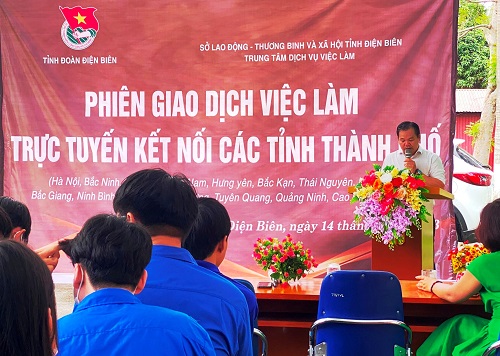 Sáng ngày 14/8, tại Trung tâm Dịch vụ việc làm tỉnh Điện Biên, Tỉnh đoàn Điện Biên phối hợp với Trung tâm Dịch vụ việc làm tỉnh Điện Biên tổ chức phiên giao dịch việc làm trực tuyến kết nối các tỉnh, thành phố phía Bắc.