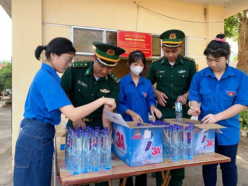 Đội hình Đoàn trường THPT Mường Nhé hỗ trợ thí sinh dự thi THPT
