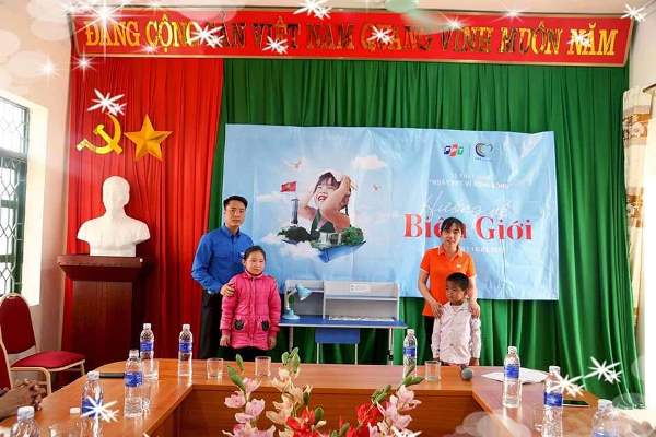 Đồng chí Đặng Thành Huy, Bí thư Tỉnh đoàn, Chủ tịch Hội LHTN Việt Nam tỉnh và đại diện Công ty cổ phần FPT Điện Biên trao góc học tập cho các em học sinh.