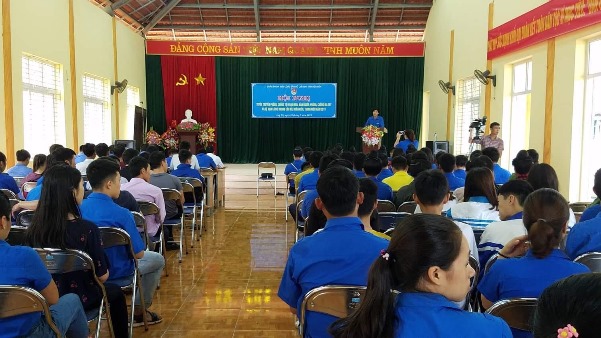 Đồng chí Nguyễn Hữu Đại, Phó bí thư Tỉnh đoàn phát biểu khai mạc Hội nghị tuyên truyền phòng, chống tội phạm mua bán người, phòng, chống ma túy và tệ nạn xã hội trong cán bộ, Đoàn viên thanh niên năm 2019 tại xã Ẳng Tở (huyện Mường Ảng)