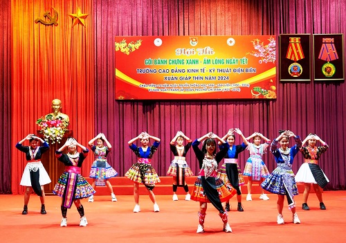 Nhân Kỷ niệm 74 năm Ngày truyền thống học sinh, sinh viên và Hội Sinh viên Việt Nam (09/01/1950 – 09/01/2024); chào mừng Kỷ niệm 93 năm Ngày thành lập Đoàn TNCS Hồ Chí Minh (26/3/1931-26/3/2024). Thực hiện Chương trình tình nguyện mùa Đông năm 2023 và Xuân tình nguyện năm 2024. Trong 02 ngày (từ ngày 27 – 28/01/2024), Đoàn TNCSHCM trường Cao đẳng Kinh tế - Kỹ thuật Điện Biên đã tổ chức Hội thi “Gói bánh chưng xanh - ấm lòng ngày Tết xuân Giáp Thìn 2024” và cuộc thi Nhảy dân vũ trong đoàn viên, thanh niên. Đây là hoạt động đầy ý nghĩa với mục đích giúp các bạn đoàn viên, thanh niên của Nhà trường nhớ về những phong tục tập quán của ngày Tết cũng như lưu giữ nét đẹp cổ truyền của dân tộc ta với sự tham gia của gần 600 đoàn viên, thanh niên.