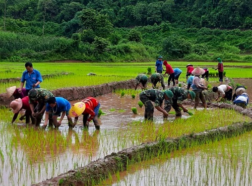 Chi đoàn Đồn Biên phòng Nậm Kè ủng hộ ngày công lao động, cấy lúa
