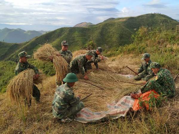 ĐVTN BĐBP tỉnh giúp dân thu hoạch lúa mùa.