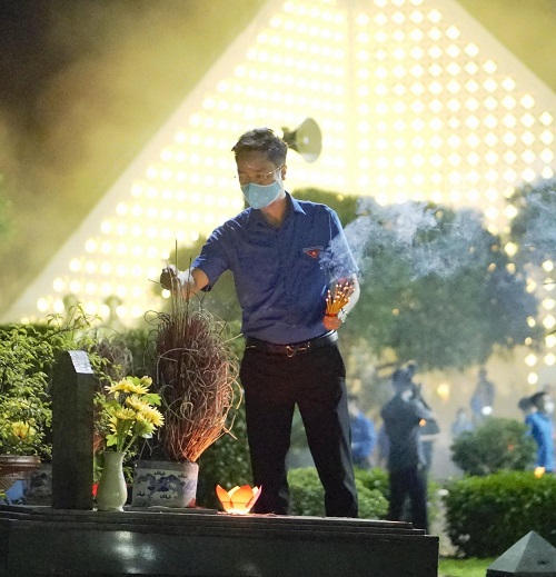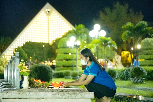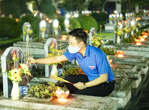 Đoàn viên, thanh niên thắp nến trên các phần mộ liệt sỹ.