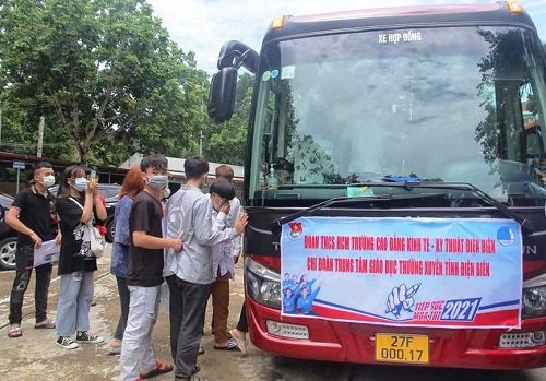 Đoàn trường Cao đẳng Kinh tế - Kỹ thuật Điện Biên phối hợp đưa đón thí sinh.