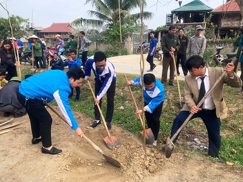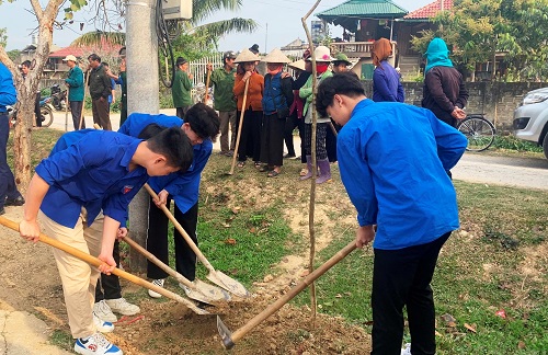 Đoàn viên, thanh niên tham gia trồng cây hoa ban.