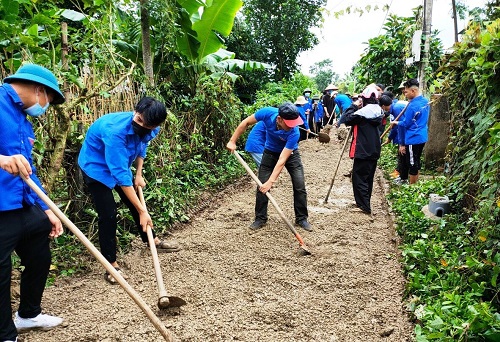 ĐVTN huyện Điện Biên tham gia xây dựng đường bê tông nông thôn.
