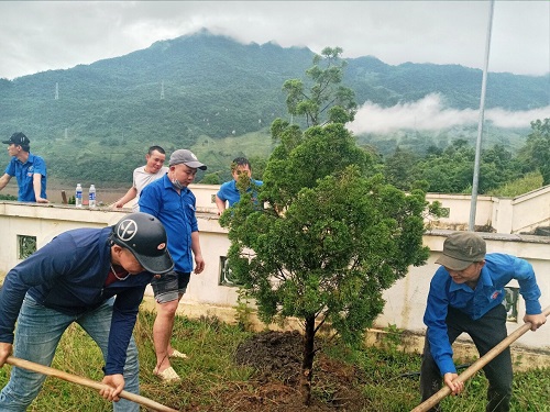ĐVTN thị xã Mường Lay tham gia trồng cây tại công viên nghĩa trang liệt sỹ thị xã Mường Lay.