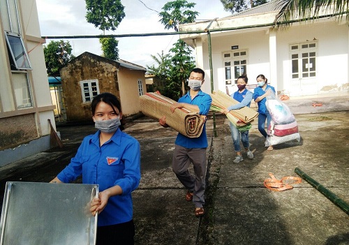 ĐVTN huyện Điện Biên hỗ trợ chuẩn bị cơ sở vật chất tại trạm y tế xã Thanh Xương