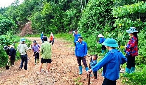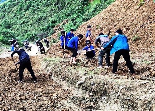 ĐVTN huyện Mường Nhé tu sửa đường giao thông.